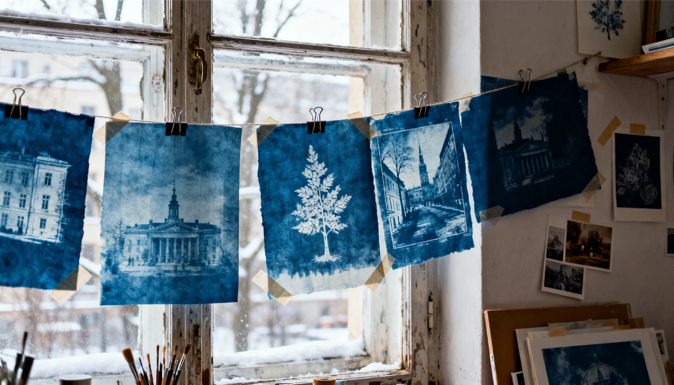 Analoge Bildwelten, Cyanotypie und handgemachte Prints.